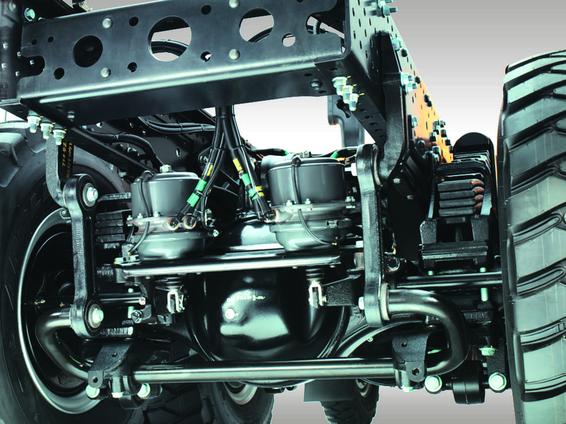 Putting Your Business on a Firm FoundationThe frame members in the chassis are not only deeper and thicker but also shot peened and powder coated for greater surface strength and resistance to corrosion. Transmission gears, clutch pads and brakes are all extra-thick for greater durability.
